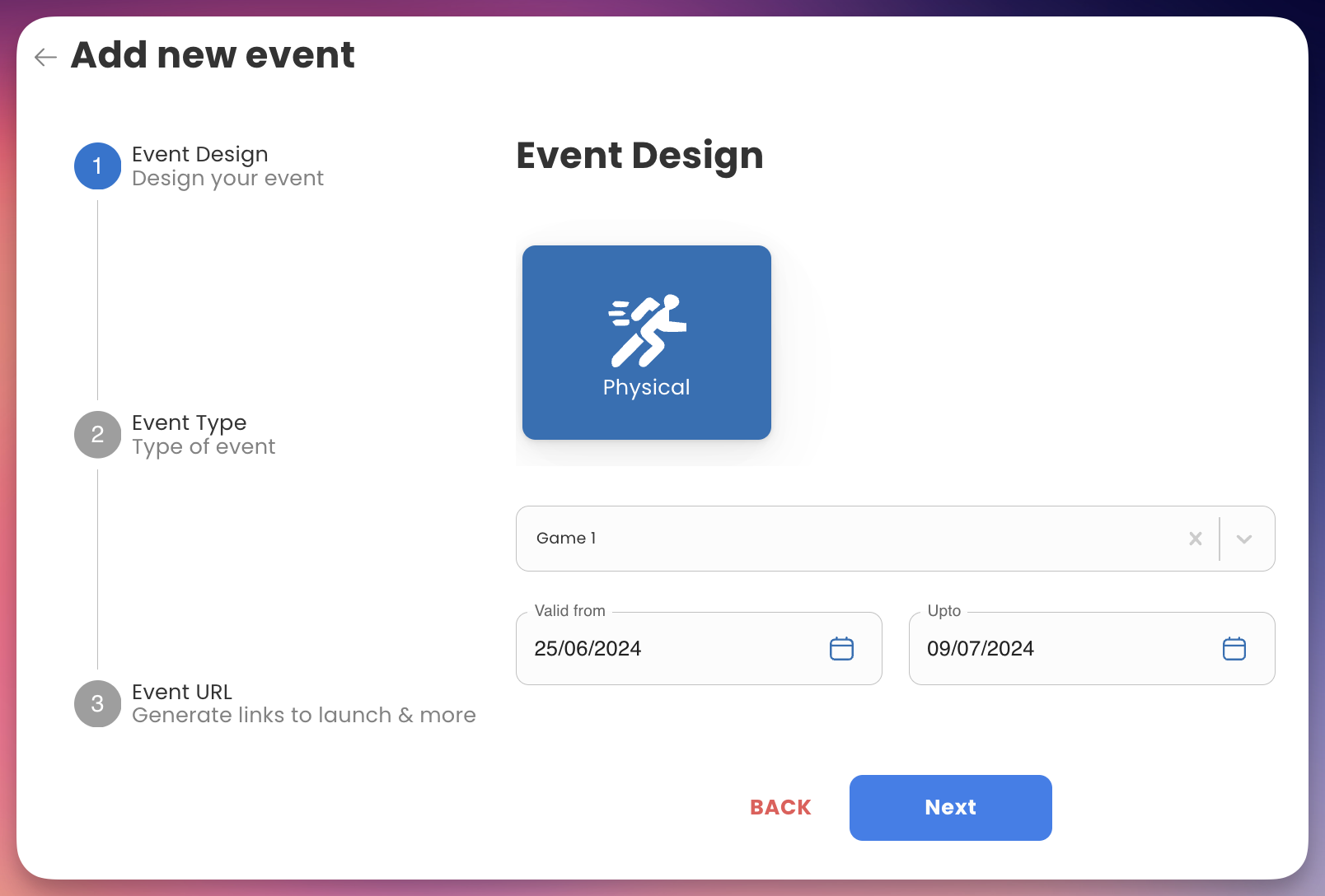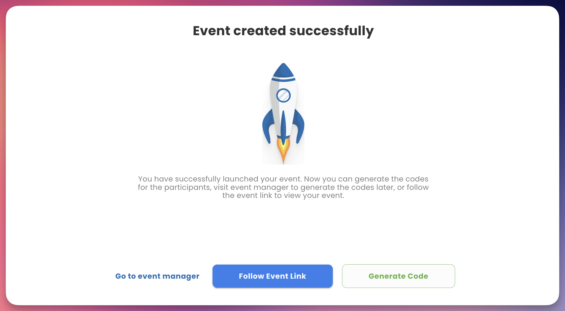 You can now start your event by sending the Event Link and Event Codes to the players.