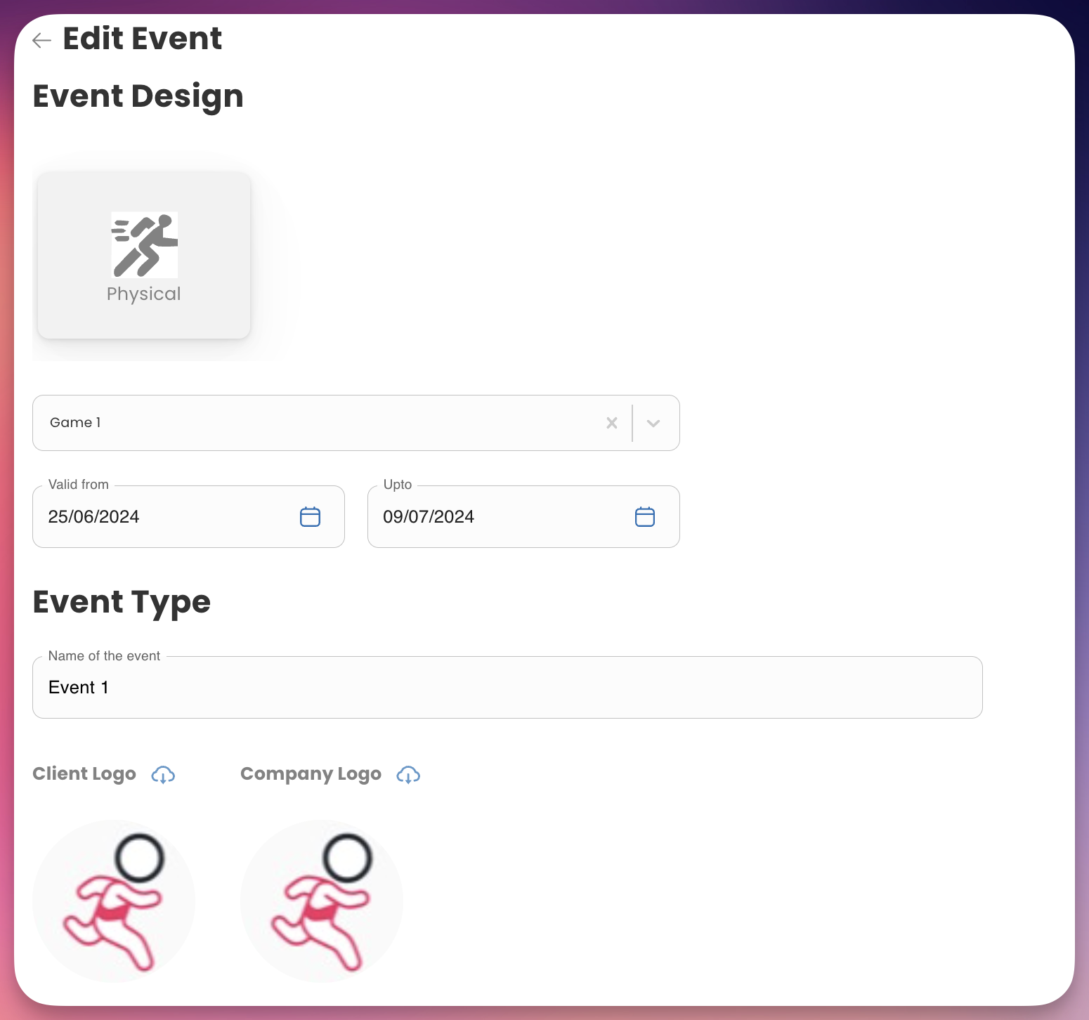 This page allows you to change the Event Design and Event Type details that you had put in.