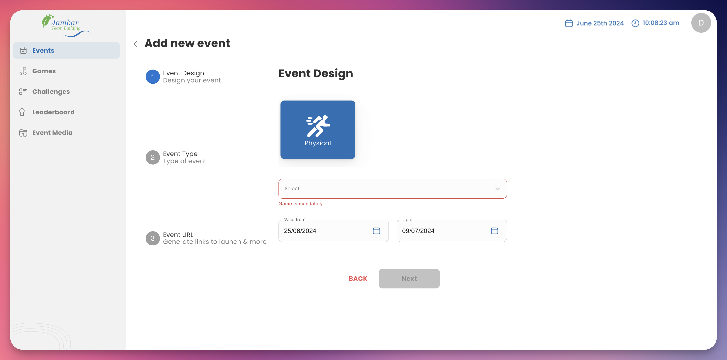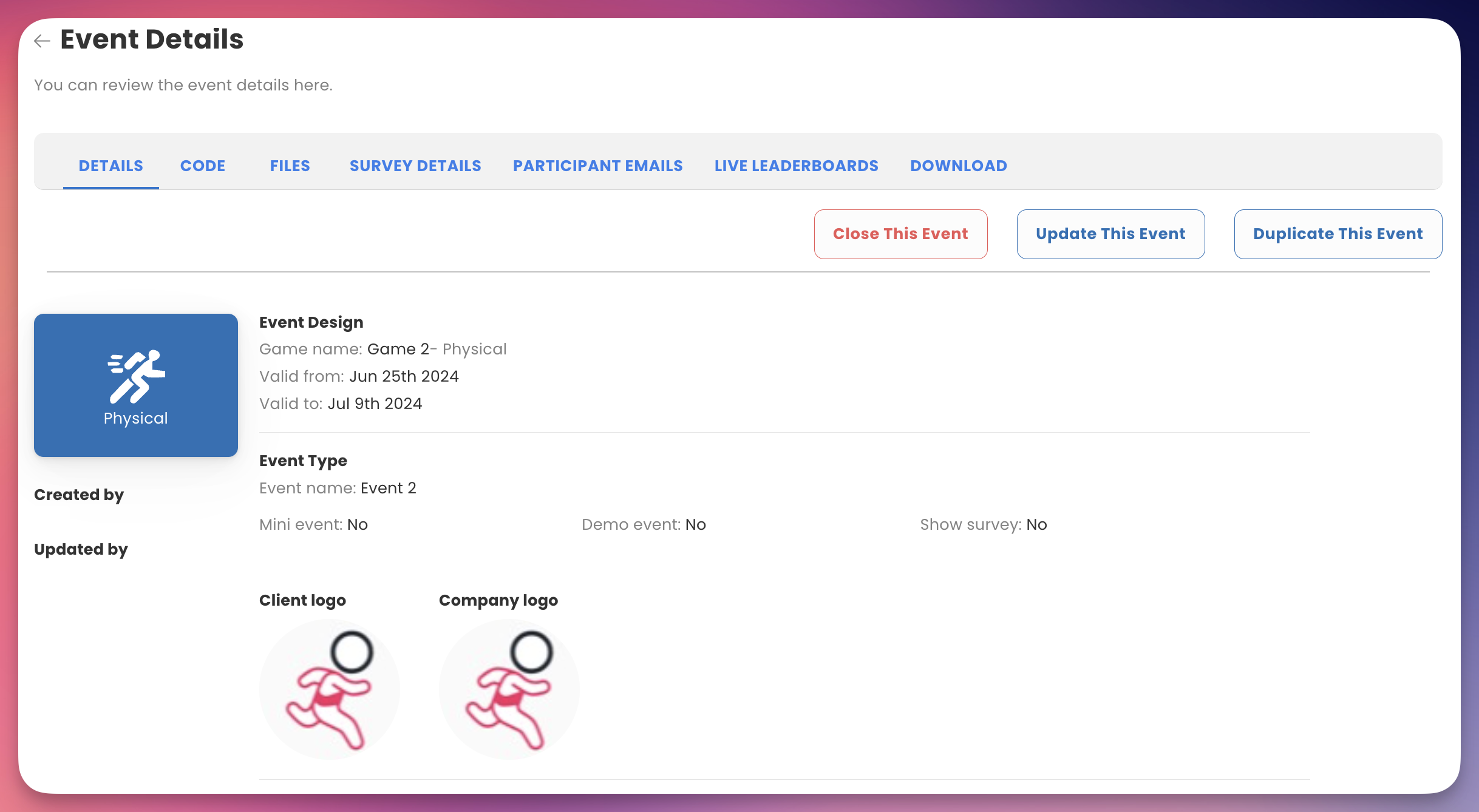 In order to start your Event, you will need to switch on "Live Event" beside your Event, and create codes for team play in the Event Details Page.