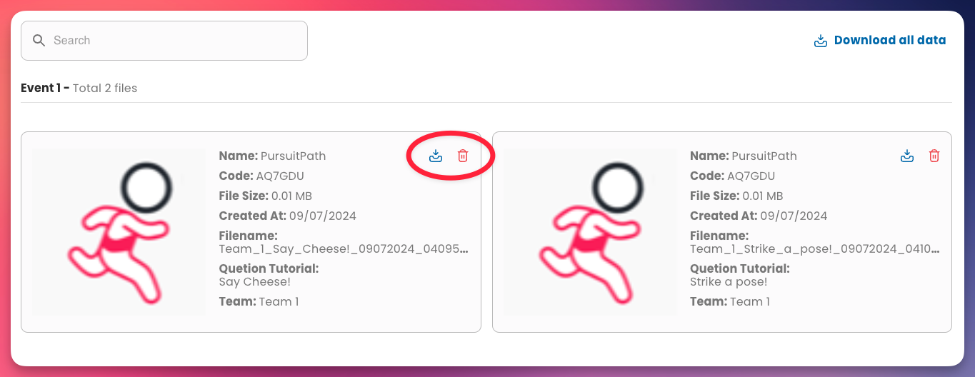 Wait till the status become "Complete" and upload percentage reaches 100%, then click on the download icon