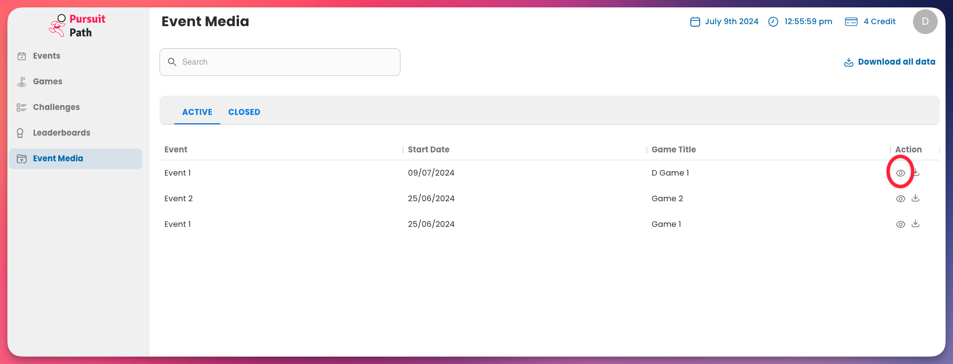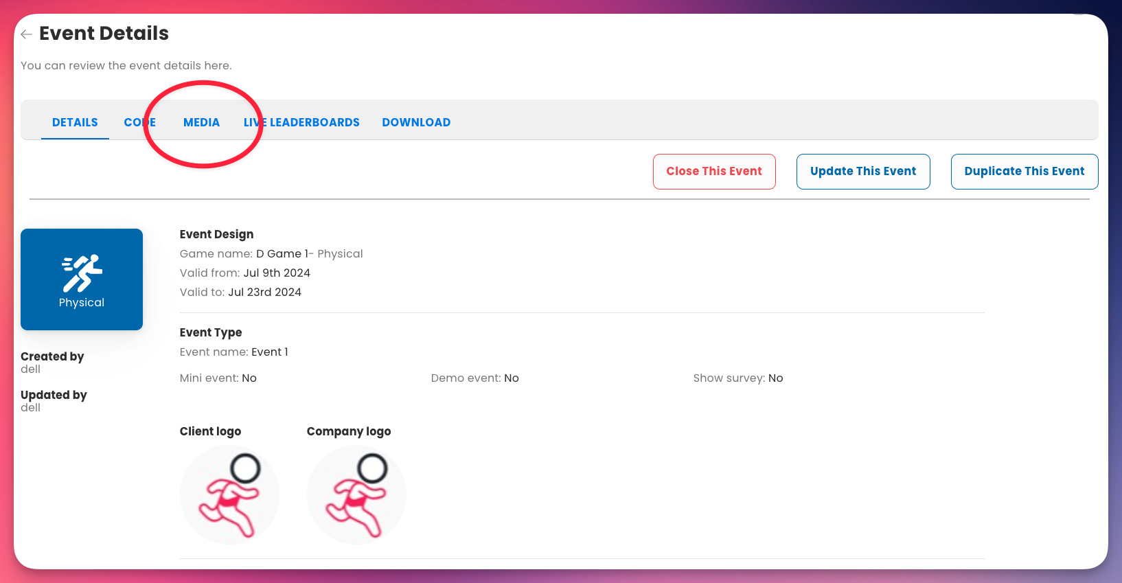 Then, click on the 'Event Media' menu item on the vertical menu on the left.